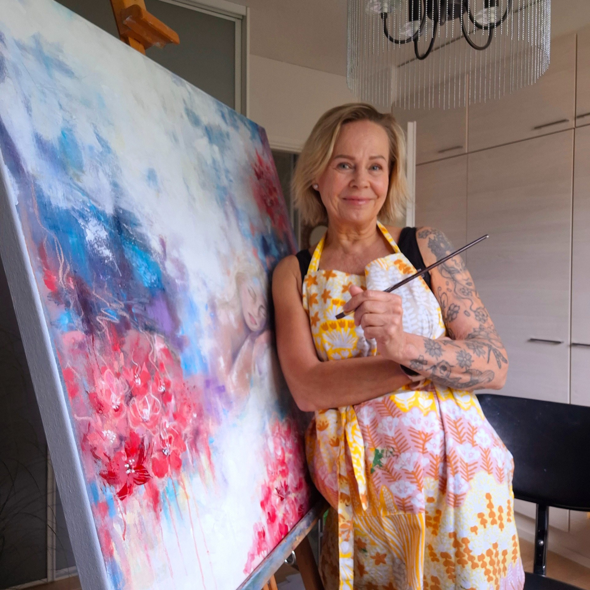 Taiteen palo sisälläni leimahti entistä suurempaan liekkiin ja toukokuussa 2023 aloitin tutustumaan maalaamisen mielenkiintoiseen maailmaan.